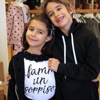 Accompagnati da Eleonora, che insieme ad Annalisa è stata la creatrice della linea, Tommaso e Matilde hanno provato diversi capi. Si sono rivelati tutti vestibili alla perfezione, comodi, divertenti.